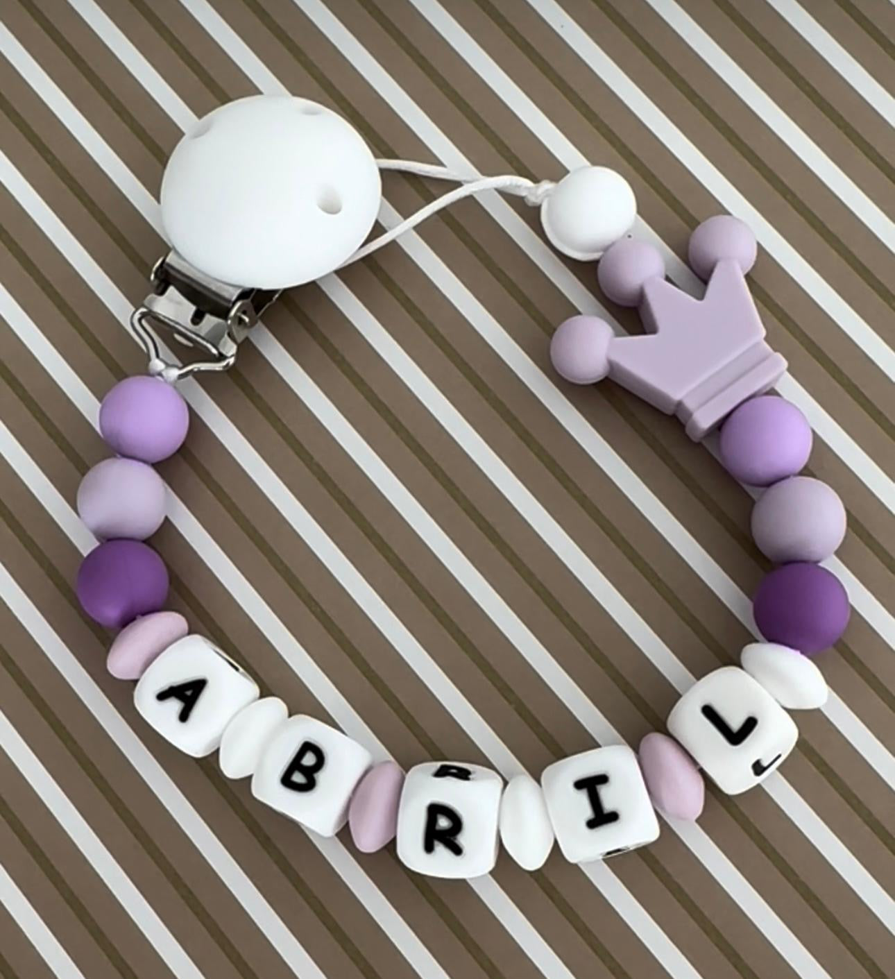 Dale un toque adorable y seguro a tu bebé con nuestro chupetero personalizado de Corona purpura.