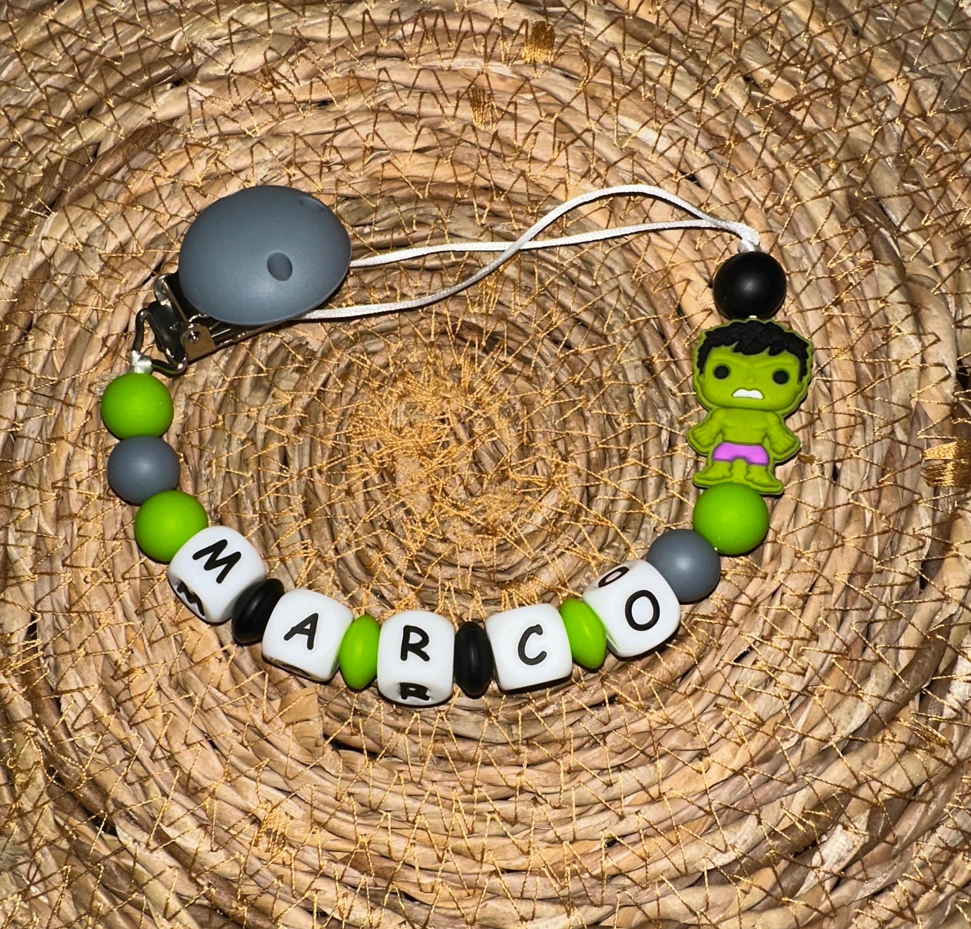 Dale un toque adorable y seguro a tu bebé con nuestro chupetero personalizado de Hulk.