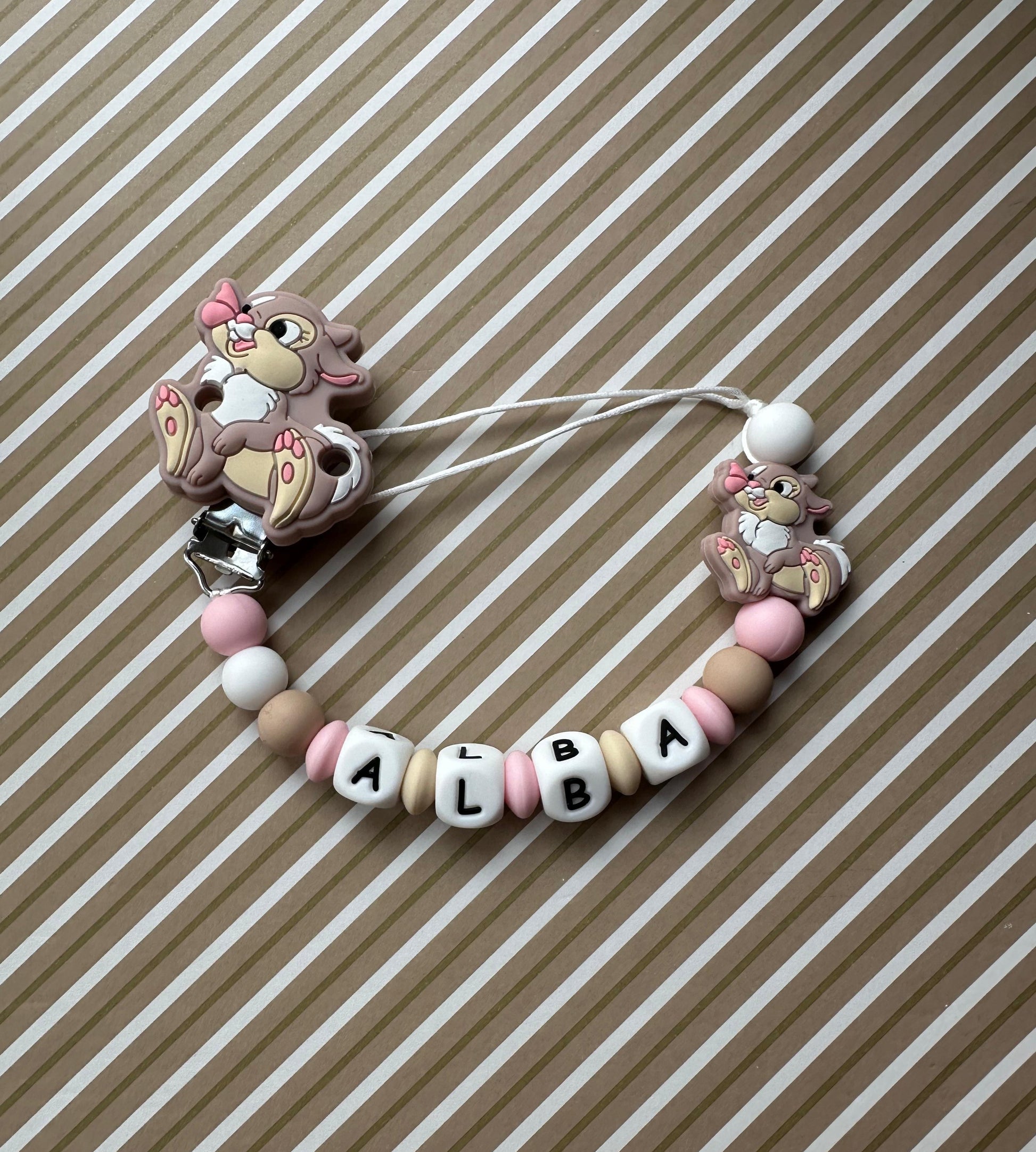 Dale un toque adorable y seguro a tu bebé con nuestro chupetero personalizado de Ardilla Rosa.